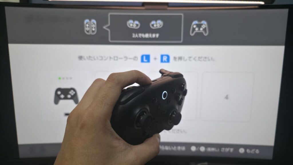 公式ではSwitch/Switch 2とWindowsに対応しています。背面のスイッチで「B(Bluetooth)」と「2.4G」を切り替えるだけで、SwitchとPCを行き来できるのは非常に便利です。