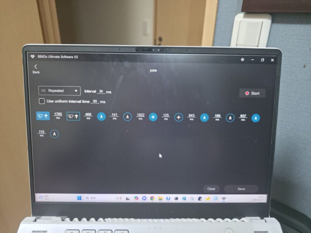 ⑨Srartをクリックし、マクロしたい操作を入力(例:ベンチならL↓入力Aボタン3回など)、Stopで停止