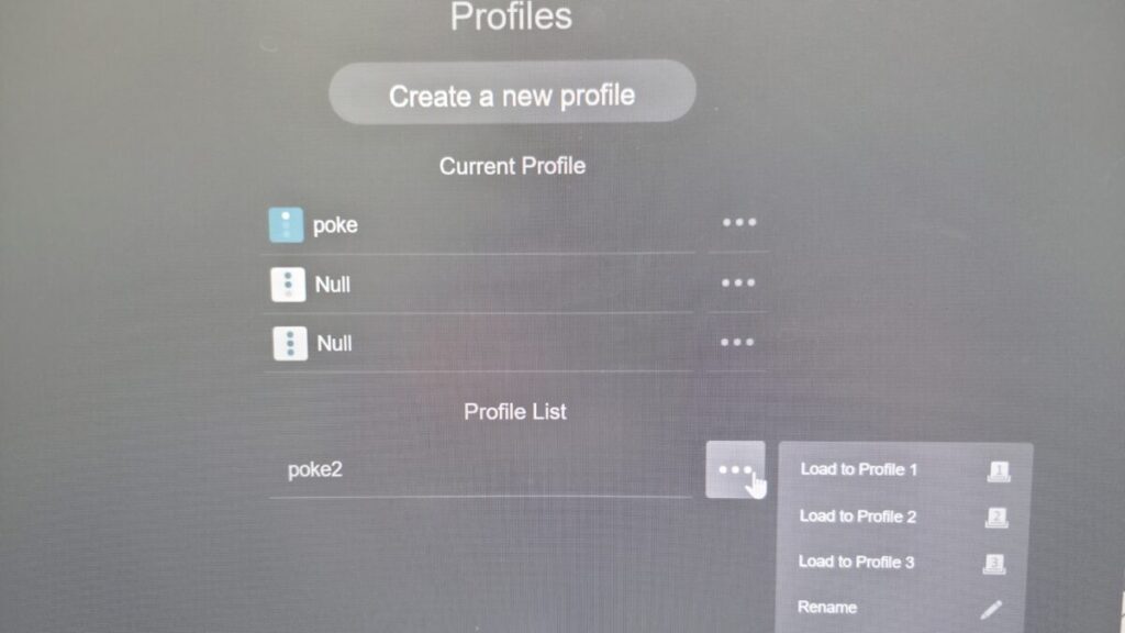 ⑬先ほどマクロ設定したProfileを、「…」をクリックしLoad to Profile123をいずれか選択し、Current Profileに表示されたら設定完了