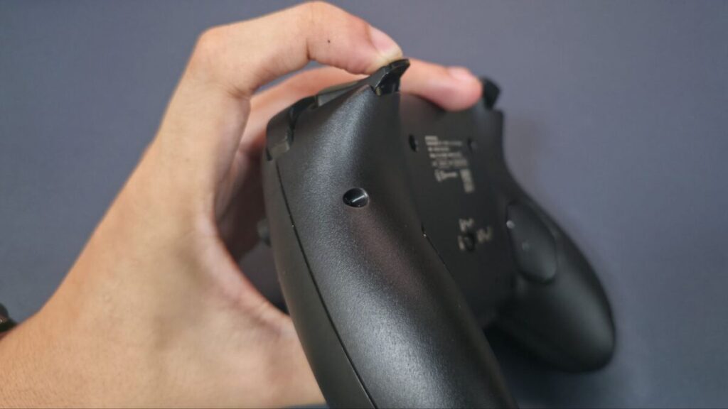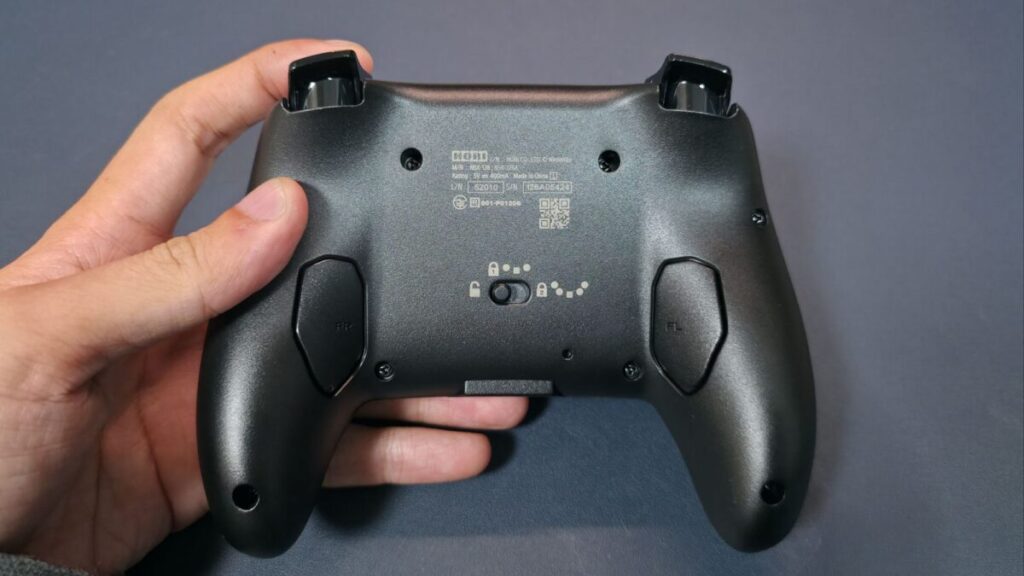 さらに、背面には左右に一つずつ割り当て可能なボタンがあり、ダッシュやジャンプなどの操作を割り当てることで、親指をスティックから離さずに複雑な操作が可能になります。