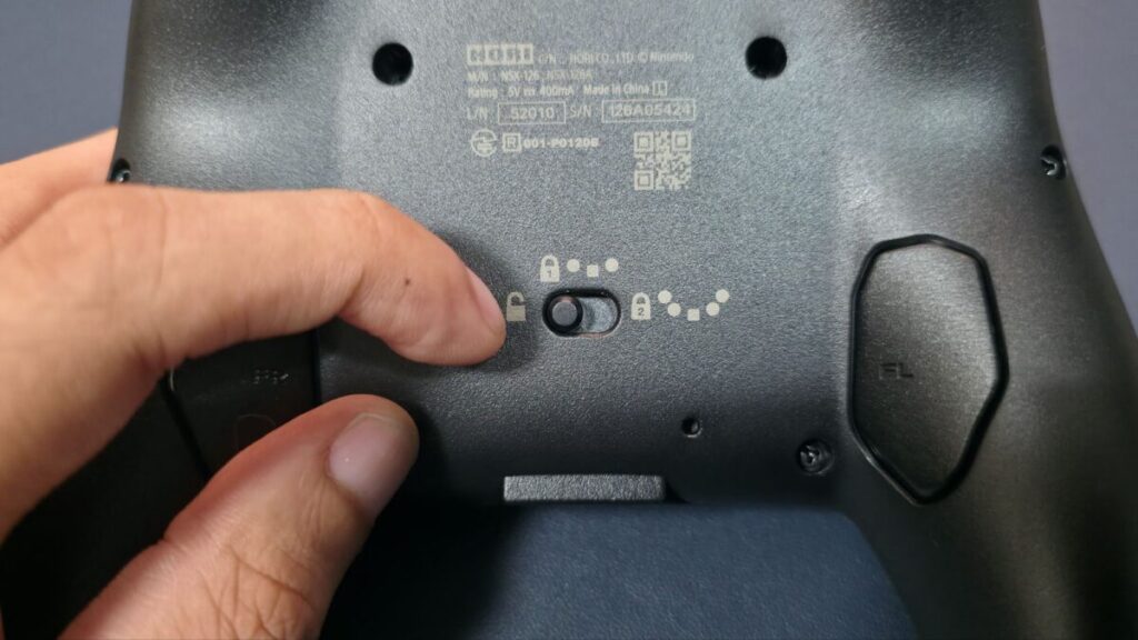背面のスイッチを切り替えることで、HOMEボタンやHORIボタンの入力を無効化できます。