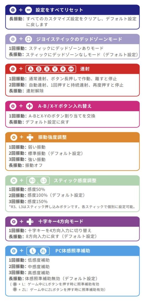 連射/連射ホールドだけじゃない!本体のみで完結する豊富なカスタマイズ機能