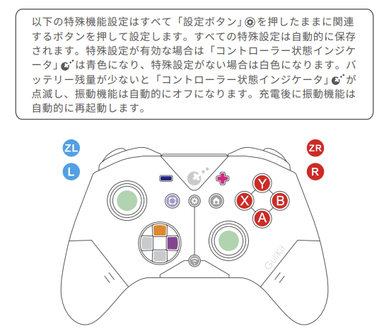 そして驚くべきは、これらの設定がPCソフトを使わずに「コントローラー本体の操作だけ」で完結するという点です。