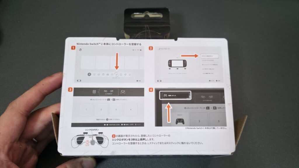 接続方式はワイヤレスです。Switch 2本体への接続はコントローラー上部のシンクロボタンを押して、ペアリングするだけとシンプル。